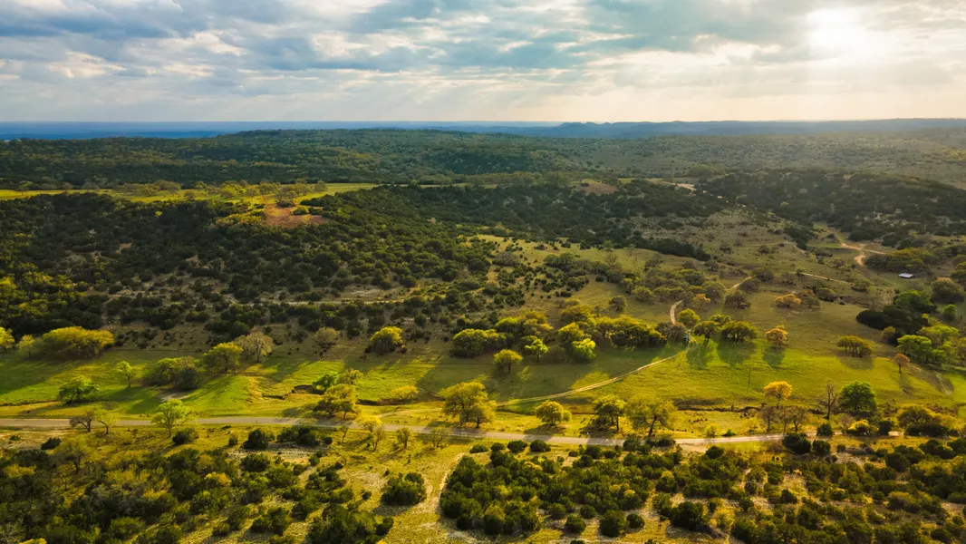 VEGETATION: The property is mainly wooded. The main trees and shrubs are cedar (juniper redberry and blueberry) live oak, elm, post oak, pin oak, Spanish oak, evergreen sumac, flameleaf sumac, mountain laurel (mescal bean), hackberry, agarito, wild plum, wild cherry, mesquite and native persimmon. Near Crabapple Road along the dry creek are a number of dwarf palm which only grow near underground wet areas. There are also a number of native pecan trees along the valley near Crabapple Road, in the valley to the west and some on top. The area on top of the hills where the main road runs and in the valley have been somewhat cleared of cedar; but, leaving the larger oak trees. Native grasses include little bluestem, KR bluestem, sideoats grama, buffalograss and curly mesquite grass.