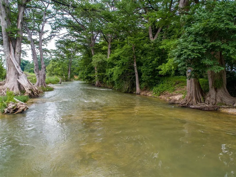 This flat, green, and rolling 48.16 acres is about 80 % grassland/open pasture, with the remaining 20% covered in herculean cypress and titanic pecan trees! The large open field was formerly a High School football field and rodeo arena. The fertile river bottom portion of the property is full of prodigious native pecan trees, herculean cypress, gigantic sycamores, elms, and intermittent underbrush and other green vegetation.