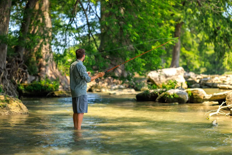 One of the standout features of Comfort Falls Ranch is its extensive river frontage, boasting over 2,250 ft of Cypress-lined riverbanks. This provides ample opportunities for fishing, with deep fishing holes and rapids where kids can play. The ranch derives its name from the breathtaking rock shelf that spans the Guadalupe River, offering stunning views and a place to relax along the river rapids.