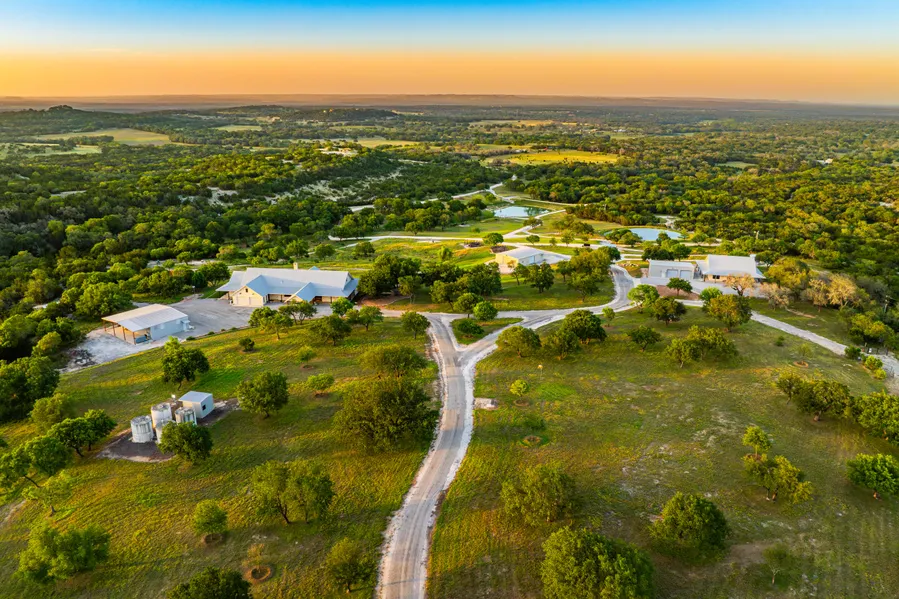 Vegetation and Terrain: One of the key highlights of this property is the incredible terrain and how it is being optimally utilized for mile long views, water run-off, and ultimate privacy. With close to 100 feet of elevation change, the houses were constructed at the top of the hill for maximum views with additional hilltops to be built on if wanted. Additionally, spill ways have been created throughout the property to ensure any rain runoff will supply the two tanks with water year-round. A majority of the cedar has been tastefully cleared allowing the Oaks to thrive and be put on display. Even with the expectational terrain, there is an approved helicopter landing spot that is registered with Lifeflight for any emergency situations.