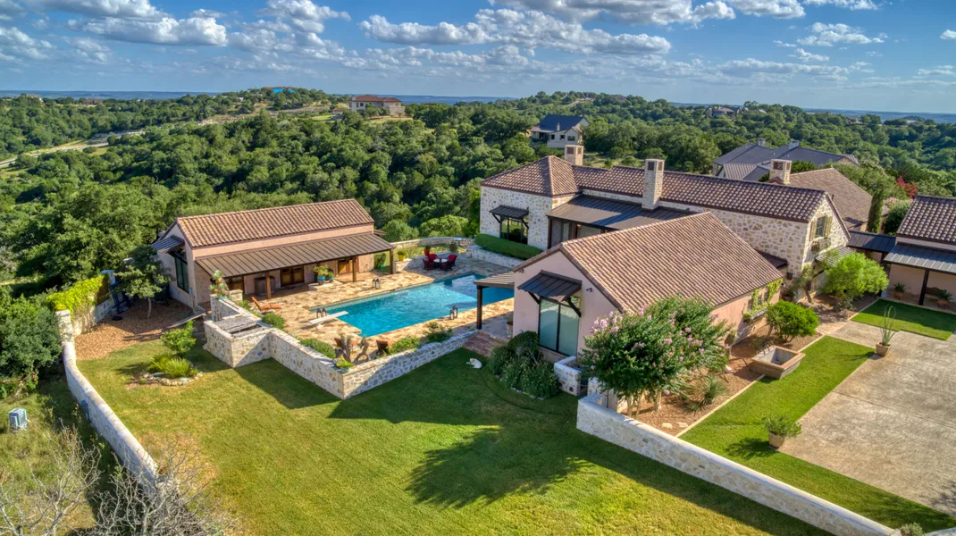 This Custom Spanish Colonial Hill Country Masterpiece is every luxury home owners dream. The interior of the house was masterfully laid out with high ceilings, custom lighting, large windows, and a great flow to the rooms. The living area has a large rock fireplace with a gas starter. Off of the living area is the den with full custom handcrafted wood top bar. The large dining area, off the kitchen, is perfect for an intimate dinner for two, or for a large party of 20. The gourmet kitchen is a chefs dream. It offers granite and concrete counters, Wolf gas range/oven, built in Sub-Zero refrigerator, a large island, huge fireclay farm sink, wine rack, and hand carved vent hood. There is a butlers pantry off the kitchen with Wolf oven, warmer, microwave, wine cooler, ice maker, fireclay sink and custom spice doors. The kitchen ceiling is over 100 year old reclaimed wood, its said to be out ...