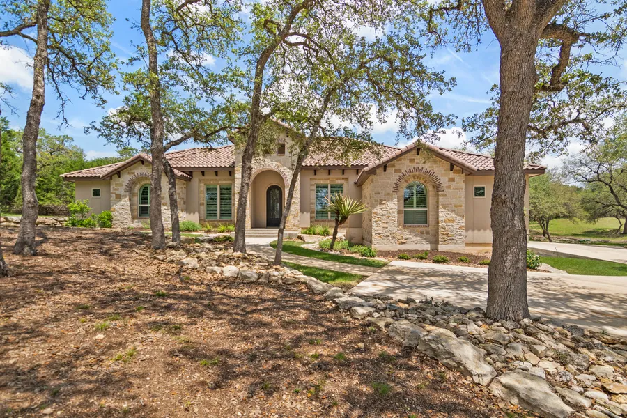 Nestled among the trees at the end of the cul-de-sac you'll find this beautiful one-story custom home backing to a two-acre greenbelt. The backyard offers a great deal of privacy not to mention amazing native wildlife. Tile roof and stone/stucco exterior create a Mediterranean style faade with soft Earth-tones framed with oak trees. Step inside to volume ceilings with art niches and many custom built-ins. Formal dining and study with hardwood flooring flank the foyer. Kitchen offers Jenn-Air appliances, gas cooking, and massive island perfect for entertaining accompanied by a fantastic walk-in pantry for incredible storage. Throughout the home, you'll find custom built-ins for mud area, command area, entertainment center, wine bar & storage. The master, separate from the other bedrooms, features a sitting area & spa-like bath with tons of natural light with master closet that is a dream (10x16). The fourth bedroom (14x16) is large enough for a gameroom or secondary living. Two guest bedrooms with en-suite baths boast spacious walk-in closets. Plantation shutters, oversized garage with storage, water softener, whole house water filter, custom faux paint - this home has it all! Boerne schools, convenient to I-10 & downtown Boerne, Fair Oaks Country Club & more!