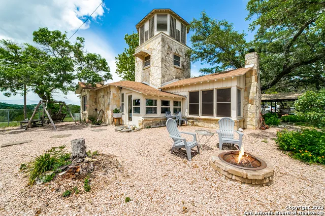 7 UNRESTRICTED ACRES IN BOERNE! Take a step back in time and experience small town Boerne charm in this original Texas Hill Country home built in 1938 around what was originally the water tower. This home has been in the same family since it was built and has been loved and well cared for. Many original features still remain, while modern updates ensure comfort. Two bedrooms on the main level with a 3rd bedroom up in the water tower! A ladder leads from the tower bedroom up to the top of the water tower and a space that is only limited by your imagination. Situated on the top of a hill with miles of views and plentiful breezes, this 7 acre property has numerous other building sites should you want to build a new main house and use the existing house as a guest house or vacation rental, or to build multiple other smaller rental units.