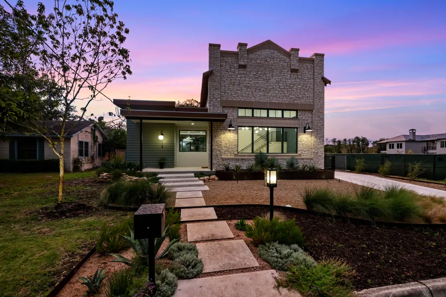 Nestled in the heart of downtown Boerne, this newly built home has been meticulously crafted with historical design elements by Adapt Architecture and Construction. It exemplifies unsurpassed craftsmanship and high-quality materials, combining harmoniously to create stunning living spaces. Throughout, only the finest appointments have been hand-selected, including hardwood, tile, marble flooring, and upgraded fixtures. Architectural ceiling details emerge from steel beams and Douglas fir structural beams, while abundant natural light fills the interior, highlighting an exceptional floor plan. This includes a large master retreat with mosaic marble in the bathroom, and the remaining two guest bedrooms are found upstairs. The chef's kitchen is outfitted with stainless steel Jenn Air appliances, a 48" dual fuel range, and pot filler, complemented by a Kohler cast iron farmhouse sink and extensive custom soft-close cabinetry with Avocatus Quartzite leathered countertops. It opens to the family room, characterized by high vaulted ceilings and a masonry fireplace with cast stone detailing. The outdoors has been designed around an heritage live oak tree, featuring a large covered patio with wood-paneled ceiling accents and a stacked rock privacy wall. Ample parking is available within the rear entry two-car garage, which includes a 414 sf bonus space perfect for a casita.