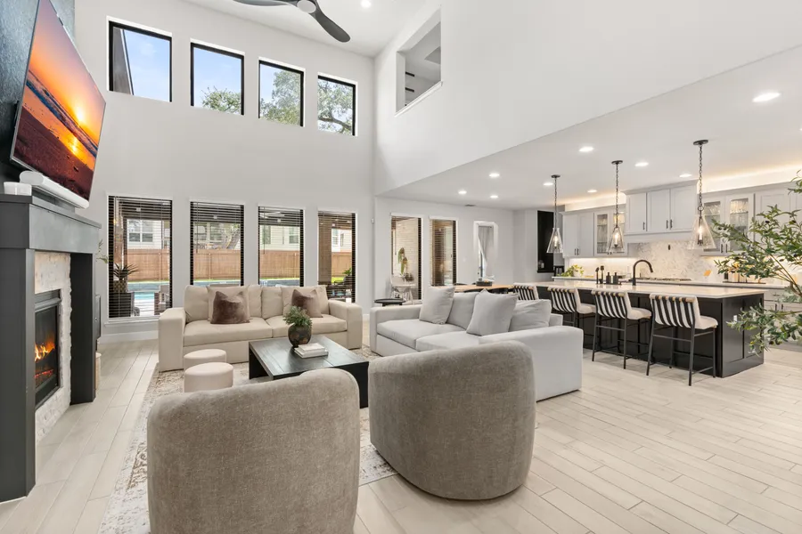 Do you want your home to be the gathering spot for friends and family where memories are made? Then look no further, this is the perfect Balcones Creek property for you! This home has been customized and cultivated to create spaces for all! From the gorgeous Keith Zars pool with water slide, to the game and media rooms, to the custom bunk room for guests, the home boasts over 5200 square feet with 6 bedrooms and 4.5 bathrooms. This Perry home offers luxury and style from the moment you enter the foyer. Soaring ceilings, abundant natural light, an open floor plan, seamless indoor-outdoor living, an oversized kitchen island, multiple bedrooms on the first level, including the primary suite with spa bath, and a guest suite provide copious space for entertaining. The second floor features 4 bedrooms, including a custom bunk room with a fireplace, 3 bedrooms, 2 full baths, a game room, and a ...