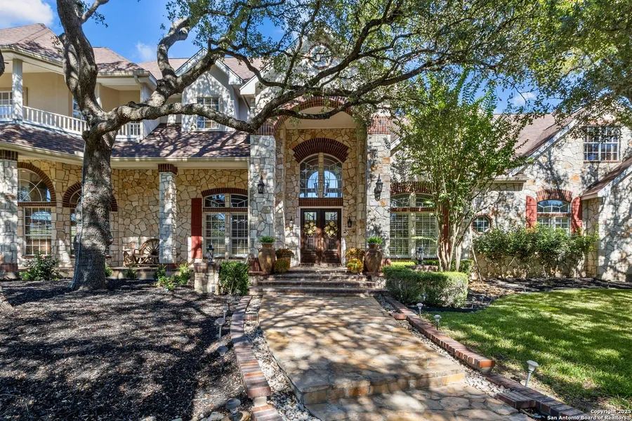 Hill Country Luxury on 6.6 Acres in Fair Oaks Ranch Discover a rare Hill Country sanctuary blending timeless elegance with natural beauty. Privately gated and nestled on 6.6 acres, this stunning estate in the heart of Fair Oaks Ranch offers refined living surrounded by mature oaks and serene views. Inside, a grand two-story foyer welcomes you with soaring ceilings, a graceful staircase, and abundant light. The formal dining room opens to a chef-inspired kitchen featuring a dramatic stone wall, large island with hanging pot rack, custom cabinetry, and built-in appliances. The kitchen flows effortlessly into the casual sitting area and breakfast room, creating a perfect space for entertaining and everyday living. Enjoy true indoor-outdoor living with a wrap-around patio and expansive deck complete with fire pit, hot tub, and generous seating-ideal for gatherings or quiet mornings surrounded by nature. The main living room offers Hill Country charm with a floor-to-ceiling fireplace, custom built-ins, and walls of windows overlooking the acreage. The primary suite is a private retreat with a sitting area, double-sided fireplace, and spa-style bath with soaking tub and dual vanities. A private staircase leads to an exclusive fitness room, sauna, and balcony-a peaceful hideaway for relaxation. The main level also includes a guest suite with en-suite bath. Upstairs, a secondary living area with fireplace, wet bar, and wine fridge sets the stage for entertaining. Two additional bedrooms each feature private baths and access to a wrap-around balcony. A flex room provides space for a game room, studio, or library. An additional detached dwelling offers versatility-ideal for a home office, guest space, or studio with half bath. With room to create a resort-style pool, cabana, or equestrian setup, this estate captures the essence of luxury Hill Country living. Residents of Fair Oaks Ranch enjoy access to the golf and country club, nature trails, and close proximity to Boerne and San Antonio's shopping and dining. This is more than a home-it's a statement of space, serenity, and sophisticated Texas living.