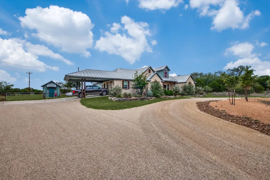 Amazing custom three bedroom, two and half bath Hill Country retreat with awesome 1 bedroom 1 bath Casita situated on 3.33 gorgeous acres. The main house is 2842 sqft. and has an elegant open floor plan featuring an impressive vaulted wood crafted barrel ceiling as you enter. Meticulously maintained, entire interior was recently painted with modern designer paint colors. The kitchen features granite counters, SS appliances, built-in oven w/ warming drawer and a gas cook top. There is a large breakfast eating area as well as a separate dining room. The kitchen opens to a spacious living room w/ soaring ceilings ideal for large gatherings & entertaining. The master bedroom is private and nicely situated off of the kitchen and offers a large walk-in shower, tub & oversized walk-in closet. The secondary bedrooms are on the opposite side of the house and share a nice full bathroom w/...