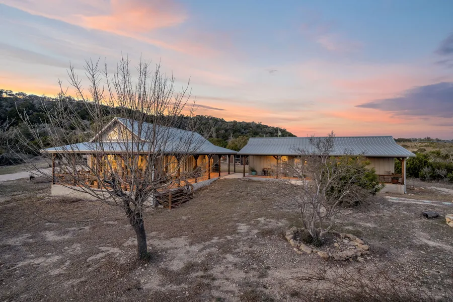 The Retreat @ Valley View is situated in the hills above historic Comfort TX and only minutes away from the Fredericksburg Wine Trail, Boerne, Sisterdale & Luckenbach. Offering privacy & seclusion with amazing views and nice usable acreage. the Retreat features 2 recently constructed structures built in 2020 that are the perfect palette to impart your vision of life in the Texas Hill Country. Beautifully designed and appointed, the Retreat offers an expansive "Gathering Room" with wrap-around porches overlooking the miles & miles of drop-dead gorgeous valley views. The Gathering Room features a kitchen w/custom cabinetry, gas range, refrigerator & leathered granite counters plus a built-in banquet w/storage. The views are spectacular. A laundry/utility room provides extra refrigerator & laundry facilities and a bathroom w/shower adjoin the Gathering Room via a covered dogtrot. The Bunkhouse is comprised of 2 spacious Bunkrooms each offering built in bunkbeds (2 plus a queen size bed in one and 4 built-in bunks in the other) and adjoin via a Jack & Jill bath w/shower and trough sink. The full length covered porch offers the same beautiful views as the main room. With no restrictions, this property is perfect for a Family, Corporate or Artist Retreat, a Short Term Rental, Glamping with room to expand. A functional workshop w/garage door & pedestrian door, Pole barns and Lean-To's provide additional storage or room for expansion. To round out this unique property high in the hills, a 16' high observatory deck is easily accessible and you'll never tire of the "miles & miles of Texas Hill Country Views" and starry nights. Other fun activities in the area include: Golf @ the Buckhorn, the Old No. 9 Railway Tunnel and other fun hill country jaunts. This is a truly special place to call yours in our beautiful Hill Country. - 5/1/2025 4:01:31 PM