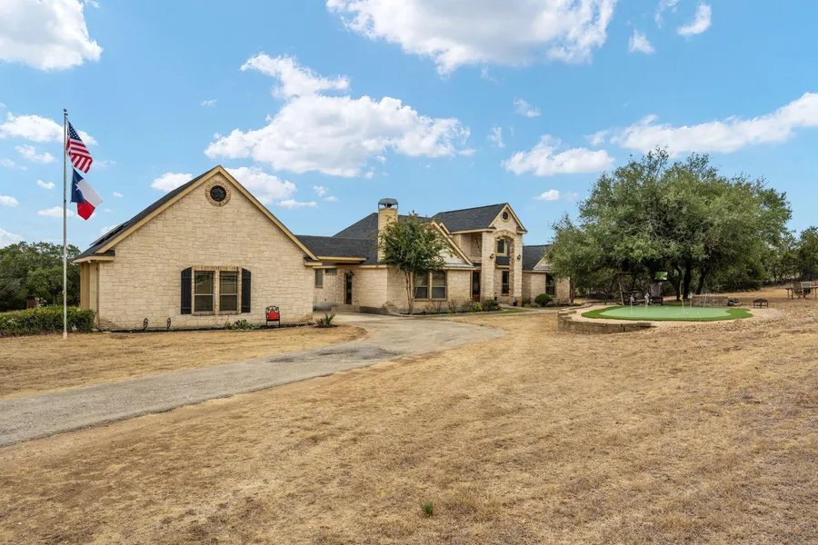 Welcome home to this small ranchette at the edge of River Mountain Ranch located about 10 minutes from Downtown Boerne! Live the ranch lifestyle on 10+ acres with all the amenities to be self-sufficient! Well, Septic, Solar panels and room to roam! This easy living floorplan is one story with an open floorplan and spacious room sizes. The Kitchen has recently been updated and opens to the Dining, Breakfast and Great Room. A wonderful gameroom is located on the main level and features Vivitar Projection Screen system, fireplace, bar area and access to a Powder Bath. Outdoor living is a hallmark of this home from the expansive patio to the Porte cochere and includes a putting green, small barn (farm animals are allowed...Chickens, etc.!) walk-in outdoor freezer for game; workshop perfect for armaments and hunting storage, oversized 3 car garage with Texas Truck sized doors. There is a rustic gameroom over the garage with 1/2 bath and mini-split system. There is a level pasture at the front with nice trees and plenty of room at the back to cut in trails or develop more pastures...award-winning Boerne Schools...River Mountain Ranch features 2 River Parks plus Spring Creek Natural Area...plenty of opportunities for outdoor living and exploring! - 1/19/2024 12:00:53 PM