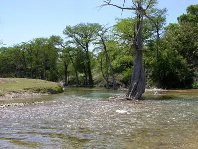 A fabulous setting for a private estate just north of Boerne on the east side of IH 10 West, minutes from Waring/Welfare/Sisterdale. A bluff overlooking the river descends to pastureland & an impressive frontage of River with towering Cypress & native trees. There is also a flowing Spring-fed creek along one border. Small 2 bedroom/1 bath cabin would make a great weekend getaway or you can build on the level bluff & use the cabin as a charming guesthouse.