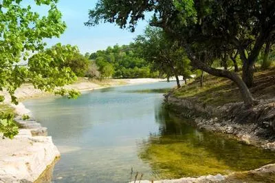 Lazy, overhanging oaks provide relaxing shade for lakeside picnics, and a drive-across dam allows easy access to both sides of the water area. A stunning, natural limestone waterfall spills into the lower swimming hole, creating a noisy setting of picture-book beauty that is truly one-of-a-kind. For more information on groundwater in this area, contact the Cow Creek Groundwater Conservation District.