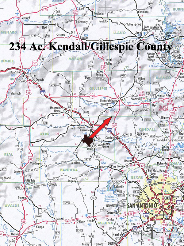Location: This Hill Country ranch for sale is located between Comfort and Fredericksburg, Texas on Bear Creek Rd. in Kendall & Gillespie Counties.