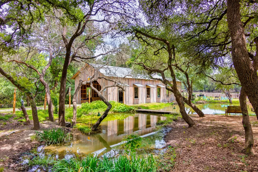 Over 1,300 linear feet of a wet weather creek that is a tributary to Sabinas Creek, runs along the border of the property, as well as a spring fed pond stocked with bass, catfish, and perch. Stretching across the creek, is Kendall countys first covered bridge, a 60x25 foot masterpiece, allowing for easy access from one end of the property to another. (See Attachment for Further Information) On the other side of the property you will find a tree covered hillside, with various wildlife species such as whitetail deer, axis, and turkey,
