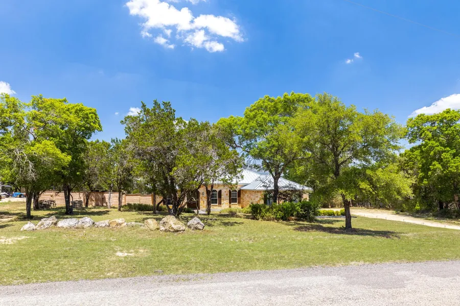 This beautiful home is truly a hill country paradise. In addition to the wonderful home, the outdoor patio space offers ample space for entertaining and cooking while overlooking the majestic live oak trees and sky reaching cedar elms. The home is no fuss with a well watered by the 20,000 gal water catchment system and filtered through an extraordinary UV light and chlorination system. The water system provides water to the entire home providing ample water for living and gardening. New privacy fence for your dogs to enjoy the enclosed back yard off of your private access road to property with 10 foot rolling gate. 200 Roaring Creek offers true hill country living. Don't miss out on this spectacular property.