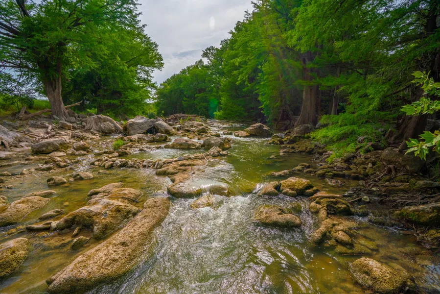 River Bend Estate boasts over 600 feet of strong-flowing Guadalupe River frontage, with depths exceeding 10 feet in areas. This stretch of the river includes swimming holes, rope swings, and scenic rapids, offering year-round recreation. A deep draw with multiple seep springs adds further character and vitality to the land, with grottos, mini waterfalls, and expanding rock bluffs reaching for the sky when standing beneath them!