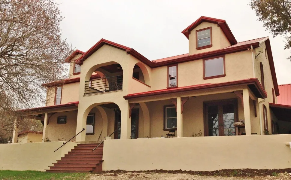 This custom 2 story, 100% stucco home that was built in 2006 has been remodeled and updated. This home sits on 9.6 beautiful, unrestricted hill country acres (horses welcome) with miles of stunning hill country hill top views. The kitchen is awesome with granite counter tops, a farm house hammered copper sink, custom shaker cabinetry, accented with bead board, a lighted pot rack, Pot filler over the stove, a walk-in pantry, breakfast bar, a stainless steel dish washer, microwave and a double oven. The first floor has an open concept design, 9 foot ceilings, 8 foot wooden doors, bamboo hardwood floors, amazing Master en-suite with his & hers hammered copper sinks, granite counter tops, large jetted bath, open style walk in tiled shower with a lighted rain shower head that shows you when your water temperature is ready. Open the barn doors to enter a large walk in closet. All the bedrooms in this home have a walk in closet. At the top of the custom wooden curved staircase you will enter the large billiard/trophy room. Open the barn doors and enter a private theater room with surround sound, or grab a beverage from the wet bar with a wine rack and beverage cooler and walk out through the exterior doors to the 10x12 veranda and enjoy the views. There is another Master en suite with jetted bath, granite counter top, glass vessel sink, lighted rain shower head with custom tile work. This home has metal roofing, and pre-plumbed gutters for a future rain collection system. Unwind sitting under 992 sq feet of porches, or watch the fire in the rock fire pit while watching deer and turkey crossing in the back yard. Country living, yet only about 14 miles to Fredericksburg/wine country or I-10 going the opposite direction.