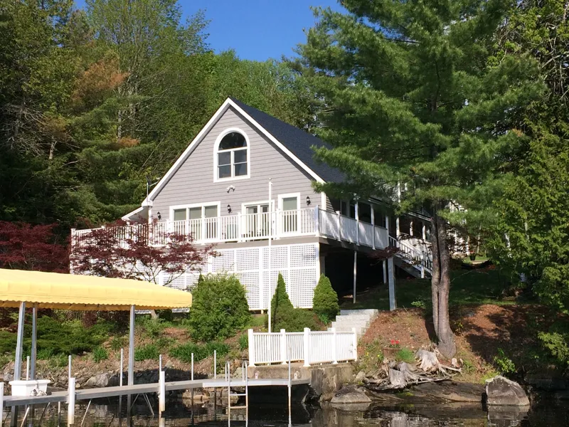 Beautiful lakeside home on the waters' edge of Messalonskee Lake. Quality construction inside & out, gourmet kitchen w/granite & stainless appliances, open concept living, dining. 1st floor master bdrm w/bath. 3 total bdrms & 3 baths. Large Azek deck wraps around house for outdoor dining w/ spectacular sunset views. Stone patio & outdoor fireplace. 3 car heated garage w/in-law apt, furnished. Workshop & storage shed.Many recent improvements, siding, roof, furnace, addt'l well, & paint. One of a kind property!