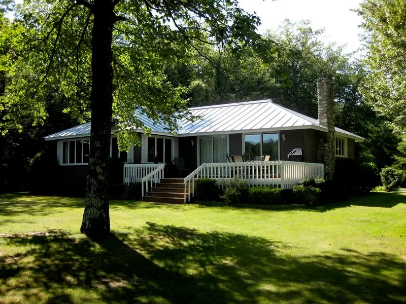 A nicer lot you'll never find. Last home on a dead end road. This 1+ acre lot is well landscaped with a level front lawn leading to 2 sandy swimming area. Plenty of space for outside fund and games. Oversized 24x40 garage built in 2008 features a 9x9 half bath. This house features open concept kitchen, dining and living room with cathedral ceiling, propane stove for second heat source. Sliders to deck overlooking front yard, lake and trees. New furnace 2015, metal roof 2010. Effective age, 1985.