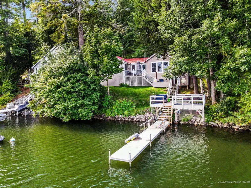 Brand new kitchen!! Recently updated 2 bed 1 bath home with 60 feet of deep-water frontage on beautiful Cobbossee Lake. Just feet from the water's edge, you could not ask for a more beautiful and tranquil spot. Enjoy stunning sunrises and views of the lighthouse from one of the many decks leading to the lake or from inside through the brand new windows. Currently used as a year-round home with a pellet stove, heat pump and spray-foam insulation to keep you warm even in the coldest winter months. There have been many upgrades since 2019 including a kitchen and bath remodel, updated electrical and plumbing, fresh paint on the exterior and so much more.