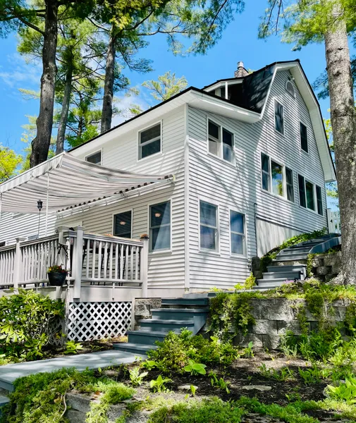 Welcome home to your own private waterfront Oasis. This stunning 3 bedroom 2 bath has 360 degrees of water views! The beautifully updated kitchen boasts Corian countertops, double ovens, jen-air propane cooktop, large pantry cabinet, ample storage and a commercial inspired stainless steel sink. Walk into the spacious living/family room and cozy up in front of the propane fireplace on cool evenings. Walk up the light filled stairs and you will find a full bathroom, the large primary bedroom with attached laundry room and a second bedroom. Continue to the basement and find another bedroom with its own entertainment space which has access to the amazing lower deck that overlooks the water. Enjoy sipping your morning coffee on the upper deck and watch the beautiful sunrise. Take a walk down to your own waterfront and catch a fish any time of year! Enjoy family time roasting marshmallows at t...