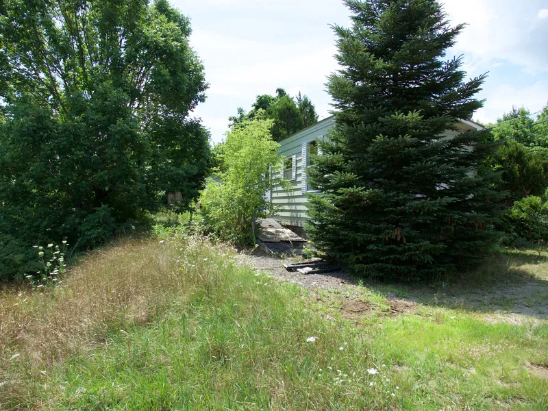 This mid-sized parcel has a mobile home, cement pad, and town sewer. The mobile home has not been lived in for some years, but the interior appears clean and the roof seems in good working condition. Along the frontage there is nice maple trees and various pretty shrubs, bushes, and flowers that just need some pruning and weeding. From the home site there is a great view of the surrounding area and pond. Whether you are looking to start out with a mobile home and some acreage, want a rental property, or want to build completely new, this lot may meet your needs!