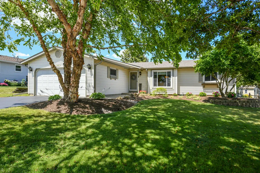 Jamestown 3BR Ranch w/Fenced in Yard! This home offers a desirable open layout with a Split Bedroom floor plan! Beautiful Eat-In Kitchen w/Granite counter tops & Tile backsplash includes an Island and is open to Living Room. Patio doors off Dining Area lead to backyard patio. Master Bedroom w/Vaulted Ceiling includes a beautifully updated Bath featuring a Tile Walk-In Shower w/Custom Glass Door, Marble Vanity & Closet. Two nice size Bedrooms & updated main Bath complete the 1st Floor. Lower Level is finished with an addt'l Half Bath, Rec Room & Bonus Room perfect for an office, playroom or exercise room! Nicely landscaped yard...Great location near neighborhood park...within minutes to area amenities! Furnace/AC (10yrs), Roof (6yrs), Gutters (2022). Call today for your private showing!