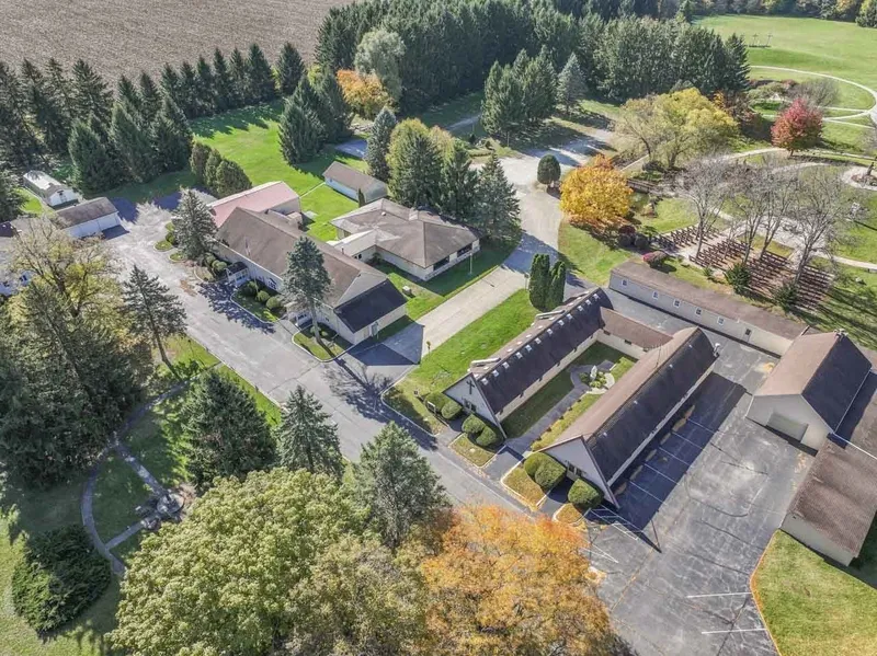 Truly one-of-a-kind property on 160 acres just outside of Twin Lakes! This expansive estate features a remarkable collection of buildings, starting with a 9-bedroom, 5-bath farmhouse complete with a 3car garage and an additional 5+car garage/storage. A smaller 2bed/1bath home w/1 car garage offers endless potential as a guest house or fixer-upper project. The original barn has been transformed into a charming hall/venue space featuring a commercial-grade kitchen, perfect for gatherings, events, or creative redevelopment, bring your business plans. Three more buildings add endless possibilities. The grounds are simply stunning, with manicured trails, a peaceful koi pond, and breathtaking views. Use what's already here and develop the rest or subdivide & create something new. Great location