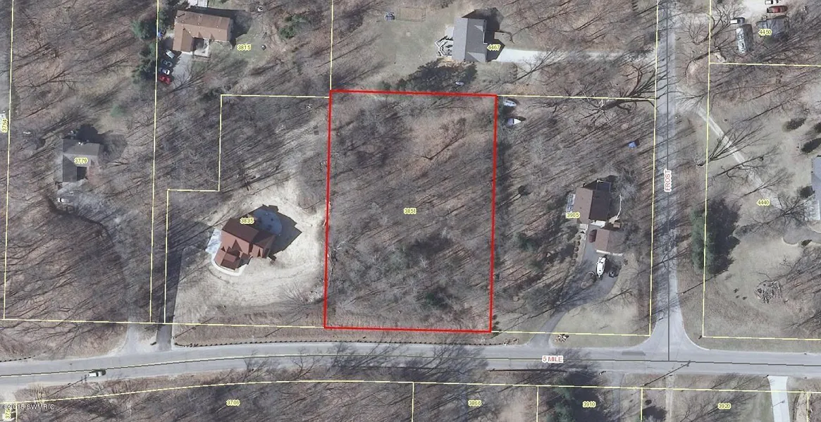 1.56 wooded acres in Northview Schools. This property is not a drive-by! Must access off Frost by the sign. The drive is cut in on the easement to the property. Natural gas and water at the street; also approved for septic. Close to Thousand Oaks Golf Club and shopping. Area of newer homes! Must walk and access it from Frost Ave. Nice building lot!