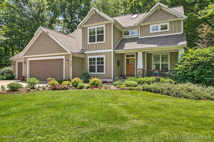 Peaceful, natural, and tranquil are the best words to describe this beautiful five bedroom, four bath Craftsman style home on just under an acre of rolling, wooded land. Mature oak, maple, and cherry trees add just the right amount of shade and privacy. This home is a natural retreat with soothing colors, textures, and finishes. The stone fireplace, Brazilian teak flooring, granite counter-tops, skylights, and an abundance of natural light all create a peaceful retreat. As you enter the home to the left are French glass doors leading to the formal dining room, to the right a beautiful living room with a natural gas fireplace, built in cabinetry, and bookshelves. Notice the arched entrance leading to the kitchen with newer stainless steel appliances, granite counter-tops, pantry, island,...