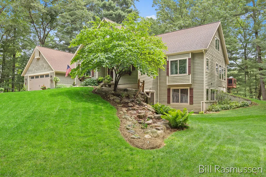 Vacation at Home! This custom-built 4 bedroom, 3 bathroom home is located on 5 private, wooded acres. Approx. 300 ft. of frontage on Wabasis Creek! Great opportunity just 29 miles from downtown G.R. The home is spotless! Gourmet kitchen! Open living and dining areas. 2 Fireplaces. Great views! Master bedroom with walk-in closet and bath. Sun room with wet bar. Wrap-around deck! Upper level has 2 bedrooms and a full bath. Lower level has a family rm., a laundry room with half-bath, rec. room, gun safe room. Walkout! 2 car gar. Wildlife galore! Boat, canoe, or kayak to Little Wabasis Lake or Big Wabasis Lake! Huge garden area. Home Warranty included. Greenville Schools! This listing is Priced $51,000 BELOW the Professionally Appraised Value!