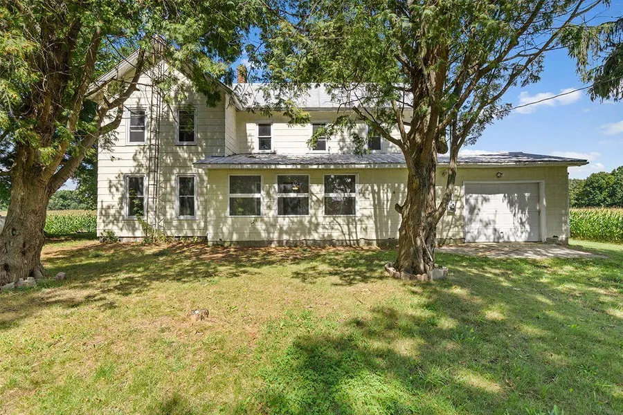 Solitude in your own field of dreams. This farm house was built solidly in 1875 and has endured the years well structurally. Some original wood work remains. The 15 x 15 kitchen and the laundry area were added over additional basement with an inside stairs. The primary 15 x15 BR on the main floor has a full bath off it. BR 2 upstairs is 15 x 15. A half bath would fit nicely in one of the hall closets upstairs that is over a downstairs bath. There is a large enclosed porch to enjoy on cooler days. All rooms have been freshly painted. There is a recently new board in the furnace. The well is about 8 years old.