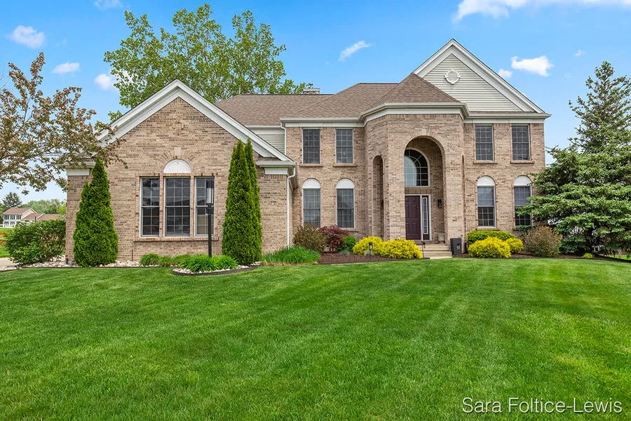 Located on a quiet cul-de-sac overlooking the 17th tee at Stonewater Country Club, this impeccably updated home boasts over 5300 sq ft of finished living space. As you enter, you'll love the 2-story foyer with winding staircase. The main floor hosts formal dining room, living room, library/study w/fireplace, and large deck. The upper level offers a spacious primary suite w/heated bathroom floors, an additional bedroom with on-suite, and two more bedrooms. A finished daylight basement offers a kitchen area, large family room and a full bathroom w/sauna. Home is located minutes from M-6, schools, shopping, restaurants, and walking trails.