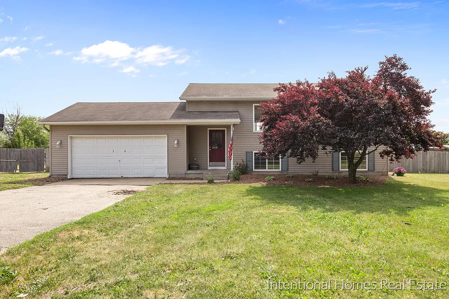 Have you heard of FOMO (Fear of Missing out) Don't let this property slip through your hands! This home features 4 Bedroom, 2 Bath Bi-Level, 2 car attached garage with over and acre of property! Updates throughout, including new carpets & fresh paint. Enjoy bird-watching, grow produce in the raised garden beds plus large fenced garden space, enjoy a harvest from fruit trees of pear, apple and peach plus grape vines (can you say wine?) A large play structure is also include as well as a storage shed. Privacy Fenced back yard. The outdoor entertaining potential is unlimited!Tired of heating bills? This home has an outdoor wood boiler in an outbuilding to help your bills evaporate. Easy access to US131, making commute a breeze. SPECTRUM INTERNET for those home officesNo HOA