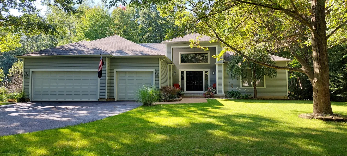 Located on a cul de sac street, this expansive ranch style home is located in the award winning Rockford Public School system, in the Hunters Ridge development. Situated on a private lot with over an acre of land. This home offers 5 bedrooms, 3 full baths, and over 4350 square feet of finished living area, plus a 3-stall garage. Upon entrance, you will notice the vaulted ceilings, tiled foyer, a spacious living room overlooking the wooded, private backyard and a family room with a fireplace. The kitchen has a large center island and pantry. The primary bedroom is located on the main floor with a private bath, twin sink vanity, and a jetted tub, plus separate shower. The dining area has sliders to access the patio and backyard. Sellers replaced roof in 2021 and included mesh covered gutters