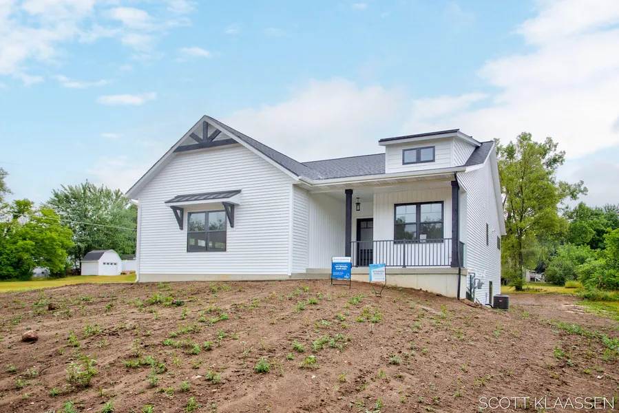 Come see this beautiful new custom-built ranch by TJB Construction Services nestled in a quiet corner of downtown Cedar Springs. Situated on a corner lot just blocks away from schools, shopping and local cuisine, enjoy being so close to the city's amenities yet residing in a tranquil neighborhood skirted by a designated nature preserve. Pull into the double stall garage, hang your coat in the entry closet and kick off your shoes from the buit-in bench in the main floor mud room. Enter the private oasis of the spacious master suite, offering plush carpeting, walk in closet and soft-close barn door separating the master bath with double sink vanity, Or have a seat in the great room featuring vaulted ceilings, a cozy gas fireplace to warm chilly nights and plenty of natural light. The open Kitchen boasts a center island, quartz counter tops, dimmable under cabinet lighting, lighted pantry and suite of stainless-steel Kitchen Aid appliances. Relax on the back covered deck accented by composite style planking and a rustic barn wood ceiling complete with ceiling fan and dimmable LED lighting. Or greet passersby from the shaded comfort of the covered front porch. Karastan wood laminate flooring runs throughout the entry, living, kitchen, dining and bathroom areas, as well as the laundry room which includes washer and dryer. Custom touches such as metal roofing accents, handcrafted solid cedar pediment, corbels and posts, exterior accent lighting, custom created solid wood pantry and closet systems, soft close drawers and 9 ft ceilings set this home apart. Daylight windows highlight the home's lower level which is framed and ready for up to 2 additional bedrooms plus a large living space and plumbed for a third bathroom. All set to add your finishing touches!