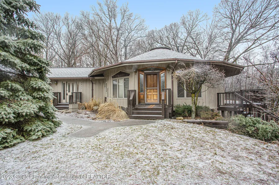 Welcome to 3311 14 Mile, this quiet scenic ranch home was built for those who appreciate architecture.This home is truly one of a kind & defined by flowing rooms and wrap around deck to enjoy the view of the 1.7acres. A bright white kitchen welcomes the sunshine and living room features a stone fireplace with cathedral ceilings. Wrap around deck, multiple sets of french doors and walk-out basement continue the joys of indoor/outdoor living. The lower level has another bedroom, full bathroom, bonus room, family room with pellet stove and plenty of storage space. Outside has a shed, fire pit and area for a garden! A well-loved home with newer roof, ready for you to make this beauty your home sweet home.