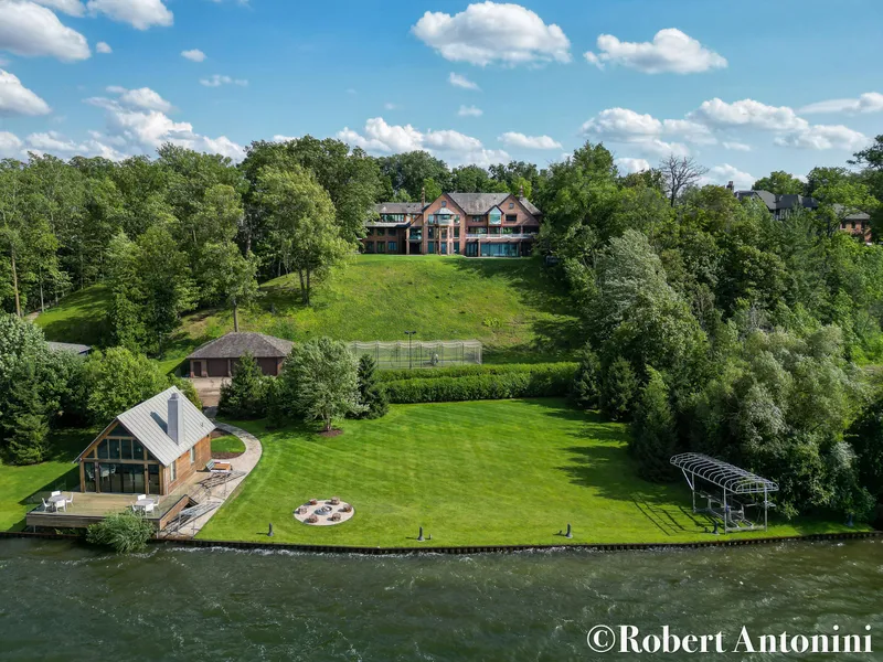 Gated waterfront property on the highly sought-after Reeds Lake featuring 300+/- feet of private water frontage offering extraordinary views of the lake from every room of the home. Nestled on almost two acres of natural beauty, the home offers 5 Bedrooms, 7 Bathrooms 4 half baths, boat house, batting cage, 4 stall attached garage with an additional 3 stall. Stunning floor-to-ceiling windows & doors, custom designed Dale Chihuly foyer light fixture, & an abundance of natural light illuminating the open floor plan w/NanWall sliders throughout. The custom designed kitchen includes exquisite, oversized islands with top-of-the-line luxury appliances, custom cabinets, woodfire pizza oven & grill rm. Spacious great rm w/fireplace, formal dining, family rm w/fireplace, sitting rm, office, screened porch, lounge rm, - all accessible to the great patio overlooking the breathtaking backyard. Recre...