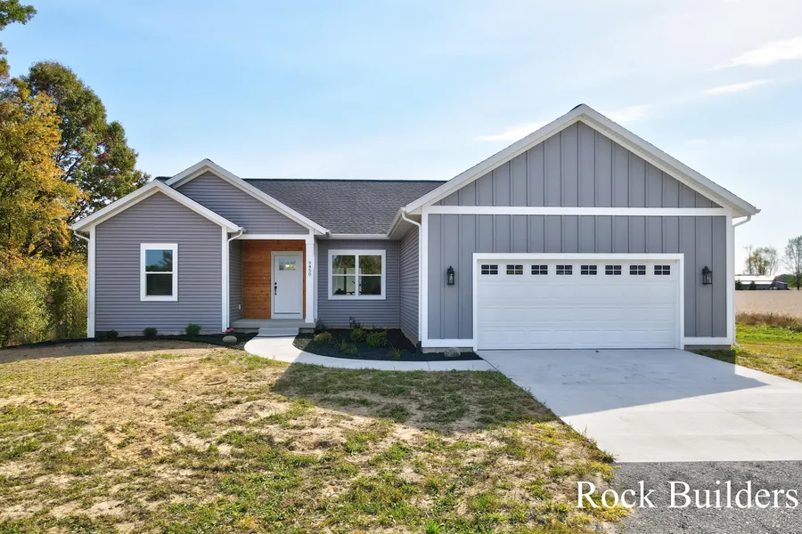New Price with landscaping added. Full Home warranty included. Welcome home to this brand new construction ranch on 4.5 acres with a bonus pole barn! Amazing opportunity to own a just completed home by Rock Builders. Not to mention with acreage, surrounded by peaceful farmland, and with a bonus 25x40 pole barn! This 4 bedroom, 3 full bath home features primary bedroom on main floor, with large ensuite bathroom with beautifully tiled shower and walk in closet. 2 more bedrooms and a full bathroom on the main floor as well. Open concept kitchen, dining and living room, make this home an entertainers dream. Walk out onto your large deck with lovely views as far as your eye can see. A bonus pole barn, has a brand new roof with water and electricity already run to it. Quality finishes throughout with Luxury Vinyl Plank flooring on main floor and basement. This property features a great mix of ...