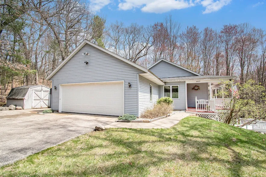 Welcome home to this walkout ranch in NORTHVIEW Schools on 1.8 wooded acres along a private drive, surrounded by executive homes and close to schools, shopping, and more. This 4-bed, 3-bath home features a NEW roof, water heater, and newer geothermal heating system. Enjoy cathedral ceilings in the open living room with views of the beautiful wooded lot and above-ground pool. The walkout level has a Family Room, full bath, and two bedrooms, plus laundry! Plenty of potential to add your own flavor!! . Don't miss out this one won't last! Seller reserves the right to set an offer deadline.