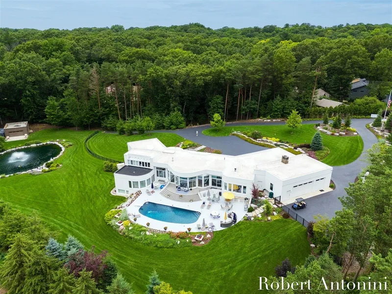 In Forest Hills Central, it is a rare opportunity to find a location, property, and setting that boasts such exceptional home design and quality. With $2 million invested in upgrades and renovations, over 90% of this residence and estate has been meticulously updated. This extraordinary home offers panoramic views of a private estate that evokes a resort-like ambiance and is ready for your arrival. Designed by Vernon Ohlman, the estate encompasses 2.4 acres of lush landscaping, featuring a waterfall with a fountain pond, a storage barn, a heated pool, and a backyard retreat patio complete with a kitchen. The property includes four bedrooms, four bathrooms, heated flooring in select areas, and a finished garage with a six-stall HVAC system. The great room is enhanced by a fireplace,