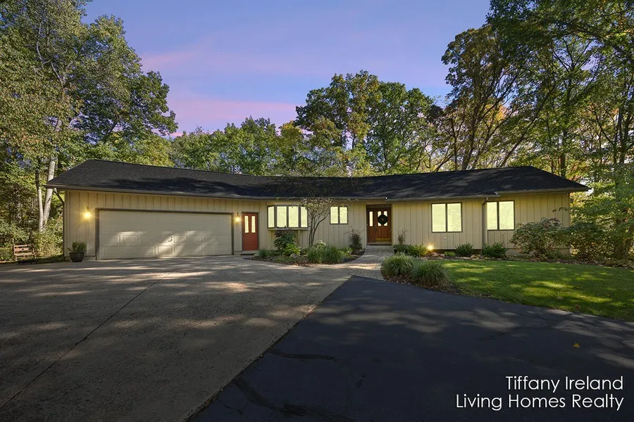 Nestled on a wooded hilltop with easy access to the adjacent White Pine Trail, this beautifully updated walkout ranch offers over an acre of scenic privacy and comfort-perfect for nature lovers and active lifestyles alike! Step through the front entry into a spacious sunken great room, highlighted by a stunning brick gas fireplace, beamed vaulted ceilings, lots of windows to take in the beautiful nature, plus French doors leading into a serene 4 season sunroom finished with whitewashed knotty pine. The remodeled kitchen features modern appliances, quartz topped center island, and a fresh, functional layout ideal for cooking and entertaining. The main level includes 3 bedrooms, 2.5 bathrooms - a large primary suite with a private bath, plus mainfloor laundry. Downstairs, the walkout level expands your living space with a huge family room, a wood fireplace, a fourth bedroom (with unfinishe...