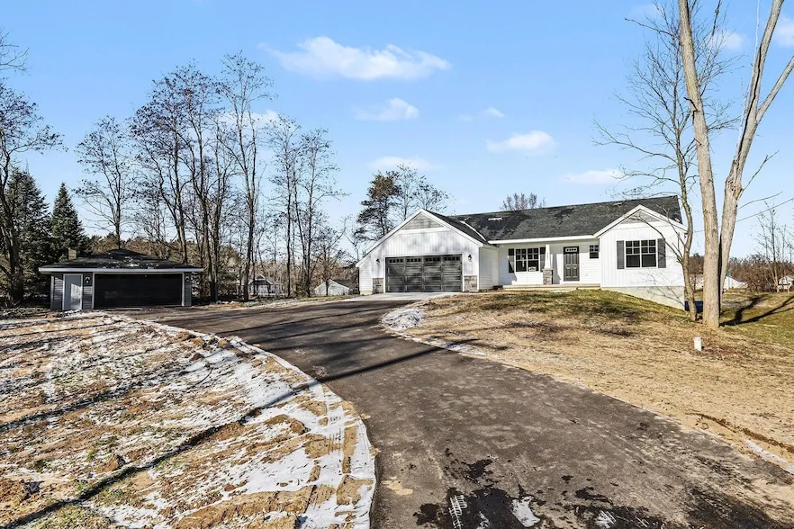 Welcome to this stunning two-stall Bayberry ranch, offering modern comfort and thoughtful design throughout. The open-concept main level features a beautiful kitchen complete with a full stainless steel appliance package dishwasher, microwave, range, and refrigerator perfect for everyday living and entertaining alike. Three spacious bedrooms, including a primary suite with a walk-in closet, provide plenty of room for everyone. You'll also enjoy the convenience of main-floor laundry with a mudroom, a stylish dining area accented by elegant arches, and a second full bath. The finished lower level offers a cozy family room with a fireplace plus generous storage and the potential to add a fourth bedroom and third bathroom. Outside, the updated accessory building adds incredible versatility, featuring new siding, windows, garage door, and roof perfect for extra storage, hobbies, or work...