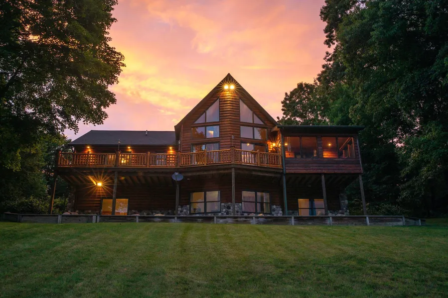 PRICE REDUCED! This magnificent log home, sitting above a beautiful 10-acre private lake is what dreams are made of for nature lovers. The wooded 28 acres is loaded with deer and turkeys, while the lake is home to a variety of ducks and fish including walleye, bass, panfish and even rainbow trout. A separate pond near the main drive also holds bass and panfish. Both the lake and pond are equipped with aerators keeping aquatic life healthy throughout the year. Aside from the main house, the property also includes a 24x42 guest home/apartment with full bath, kitchen, large living room, laundry room, bedroom and full basement. A large 46x64 pole barn offers plenty of storage and a boathouse near the lake is convenient to store all your water toys. There's even a small cabin near the pond, a perfect place to read a book or take a nap while listening to the sound of the fountain. This once in...