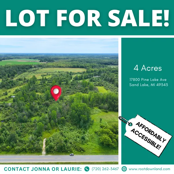 This stunning 4-acre escape in 17800 Pine Lake Ave Sand Lake, MI 49343 offers peace, endless views, and calming lakes. Yet, Grand Rapids with its city buzz is just 30 minutes away! Build your dream home or explore agricultural pursuits - farm, raise livestock, or simply unwind. A perfect piece of land for those who enjoy farming and livestock as a hobby! The choice is yours to create your perfect life in this versatile haven.