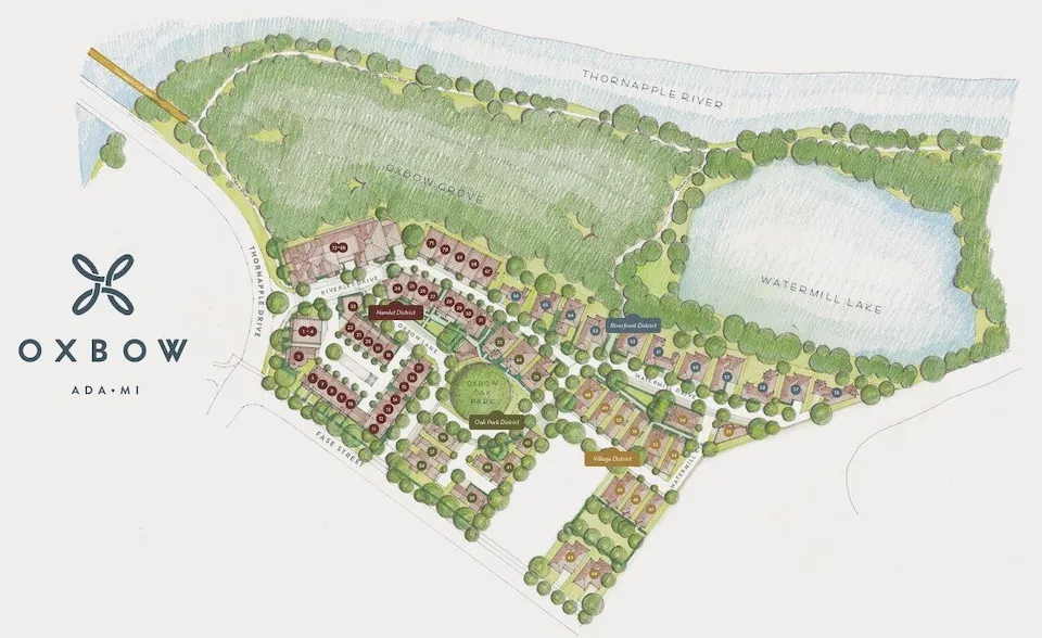 Oxbow is the newest signature neighborhood by Mosaic Properties. Situated along the Thornapple River, Oxbow is designed to bring the best of local design and architecture to Downtown Ada. Lot #60 is situated along the Riverfront District and offers views of a the neighborhood lake and Thornapple River. Mosaic Custom Homes has partnered with some of the most talented architects in the country to design thoughtful and architecturally stunning homes. Oxbow's neighborhood design brings connectivity for its residents to shops, fresh food, and nature. A pedestrian bridge over the river connecting directly to the Village of Ada and a bike path along the Thornapple and Grand River are in the planning stages.