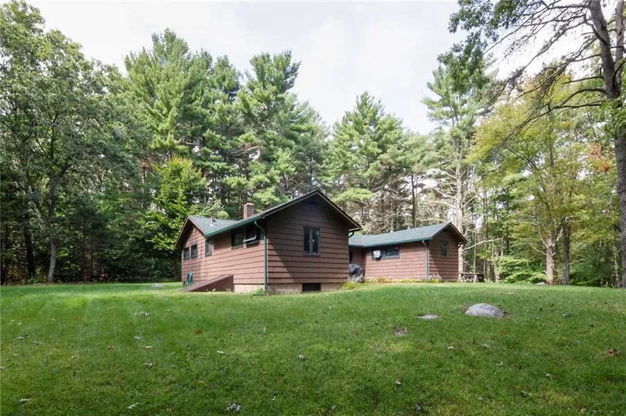 Set back off the road in the middle of 7 wooded acres, you'll have plenty of privacy and peacefulness! This charming rustic home is located across the street from the George Parker Woodland Wildlife Refuge. An attractive stone fireplace is the focal point of the living room with vaulted ceilings and hardwood floors. 2 beds plus a bonus room with built-in bunk beds. Roof, well, and septic are all within last 8 years. What a hidden gem!