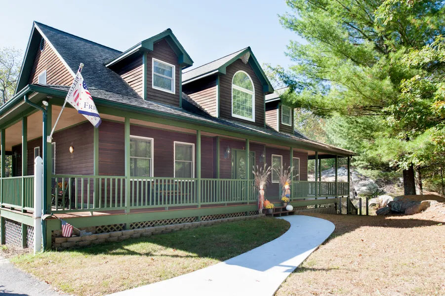Check out this one of a kind dormered cape with features only found in a custom built home! Located on a private cul-de-sac, you can enjoy 360 degree views of nature from the full wrap-around porch! Living room with beautiful CT stone fireplace, large granite EIK with stainless appliances, formal dining and hardwoods. First floor master suite, 2 beds (possible 3rd) upstairs plus laundry room and a gathering room on 2nd floor overlooking entry. Partially finished lower level with in-law potential. Pool, generator hook-up and more. Come see!