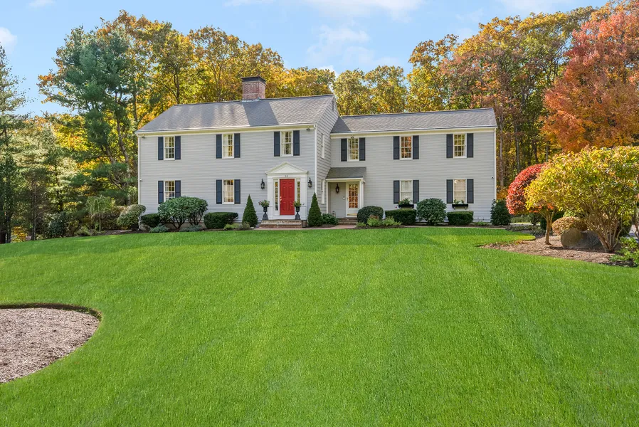 This freshly painted Moorehead colonial set on a private manicured acre lot in the desirable Signal Ridge neighborhood is move-in ready! Light and bright open concept eat-in kitchen features custom cabinets, silestone counters with tile backsplash, stainless steel appliances, counter seating and a matching wet bar. Walls of windows flood the space with light and large gathering spaces make for easy entertaining. Kitchen flows to the great room with a wood burning stove that overlooks the pool and spacious back yard. The kitchen and great room connect to the den with custom built-ins and gas fireplace and also to the dining room. First floor includes a formal living room / office with an additional gas fireplace, mudroom and a layette with laundry area. The second floor offers a private owner's suite with ample closet space and a large bathroom. This floor also offers three spacious bedro...