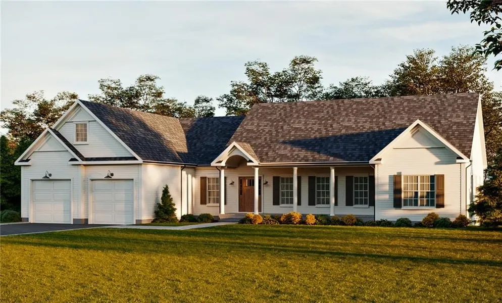 Brand new one level home on 2 acres, close to amenities and highways. Master suite with large walk in closet, open kitchen living dining, walkout lower level, possible expansion for bonus room on second level. Enjoy brand new home in a convenient and private location. Pictures of interior are of previous builds to show finish work.