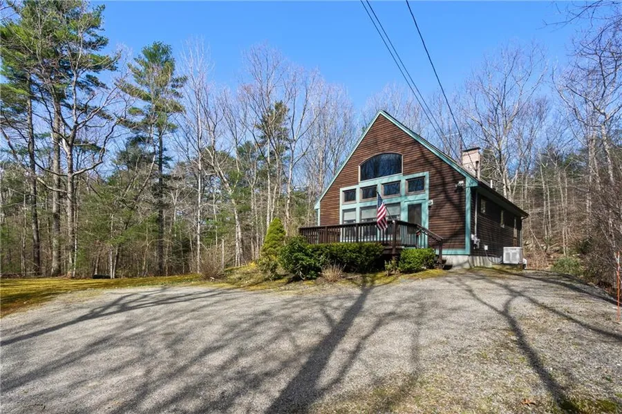 Welcome to your country home. This custom built A-Frame style home has been cared for by the original owner for over 28 years and eagerly awaits someone new to appreciate it. While watching the sun rise and listening to the birds singing, enjoy your morning coffee on the front porch. Entering through the front door notice the open floor plan, combining the living room, dining area and eat in kitchen. The soaring cathedral ceilings, skylights, plentiful windows and slider allowing natural light complete the living room and dining area. Observe the beautiful wide wood plank flooring. The original kitchen awaits a new owner's creativity. Conveniently located on the first floor are the two bedrooms and bathroom. Both bedrooms are adequately sized with amply closet space. Let's walk upstairs to second level. As you walk up the stairs notice the wood beams and spectacular views of the yard fro...
